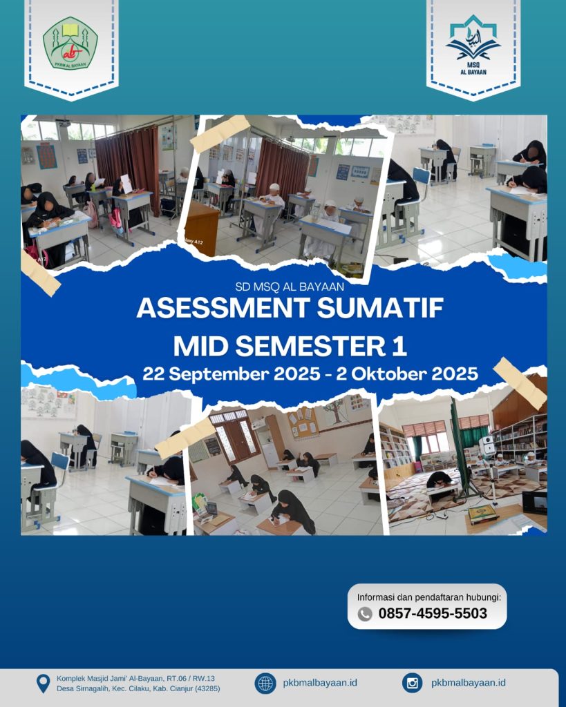 Kegiatan Assessment Sumatif Mid Semester 1 di PKBM Al-Bayaan tingkat SD dilaksanakan pada tanggal 22 September 2025 hingga 2 Oktober 2025. Kegiatan ini diikuti oleh seluruh peserta didik tingkat SD sebagai bentuk evaluasi untuk mengetahui sejauh mana pemahaman mereka terhadap materi pelajaran yang telah diajarkan pada paruh pertama semester. Pelaksanaan assessment dilakukan sesuai jadwal yang […]