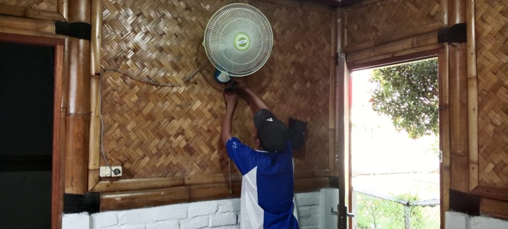 - Mencabut rumput liar dan merapikan taman