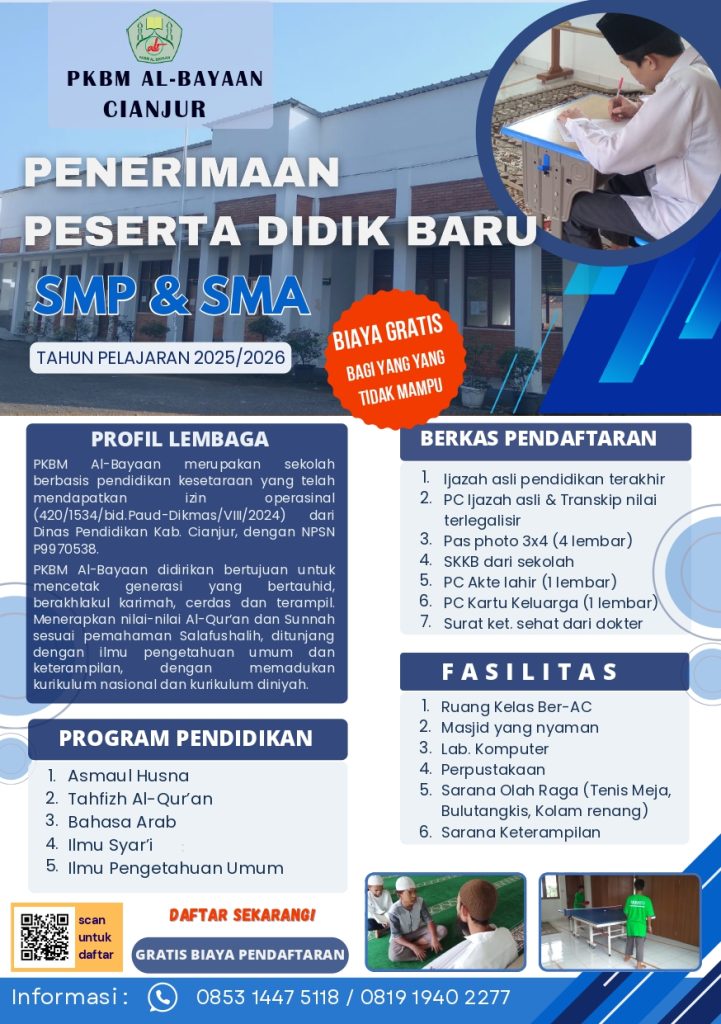 Jangan lewatkan kesempatan emas ini! Mari wujudkan cita-cita bersama PKBM Al-Bayaan. ✨