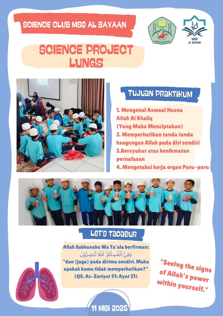 Inilah salah satu kegiatan rutin yang dilakukan di SD PKBM Al Bayaan yaitu: Ekskul Science Club Pada Ekskul Science Club kali ini, kita melakukan percobaan Membuat Model Sistem Pernafasan Tujuan dari Percobaan ini adalah:Anak anak merenungi Ayat-Ayat Allah pada tubuh nya (QS Adz-Dzariyat: 20-21)Anak-Anak mengenal Allah Al Khaliq (Yang Maha Menciptakan)Anak-anak mengenal apa itu paru […]
