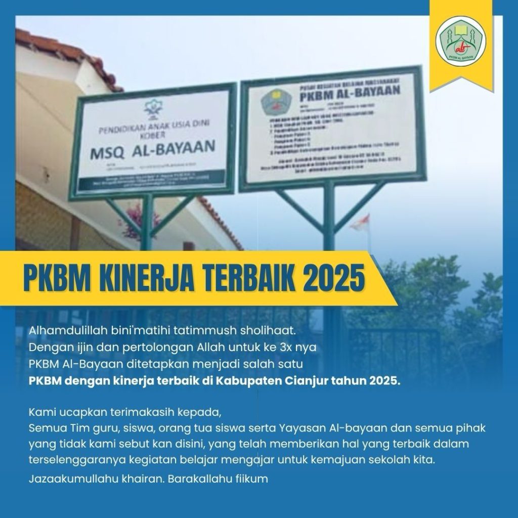 Alhamdulillah, PKBM AL- BAYAAN Terpilih kembali menjadi salah satu PKBM kinerja terbaik kabupaten Cianjur Tahun 2025.Kami ucapkan terimakasih kepada,Semua Tim guru, para peserta didik, orang tua siswa serta yayasan albayaan dan semua pihak yang tidak bisa kami sebut kan disini, yang telah memberikan hal yang terbaik dalam terselenggaranya kegiatan belajar mengajar untuk kemajuan sekolah kita.. […]